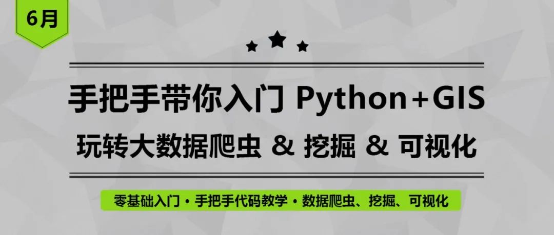 为了帮助大家全面系统学习Python+GIS 及掌握相关实操技术,城市数据派特别推出《手把手带你入门 Python+GIS:玩转大数据爬虫 & 挖掘 & 可视化》,6月18日开课,欢迎报名参加学习!