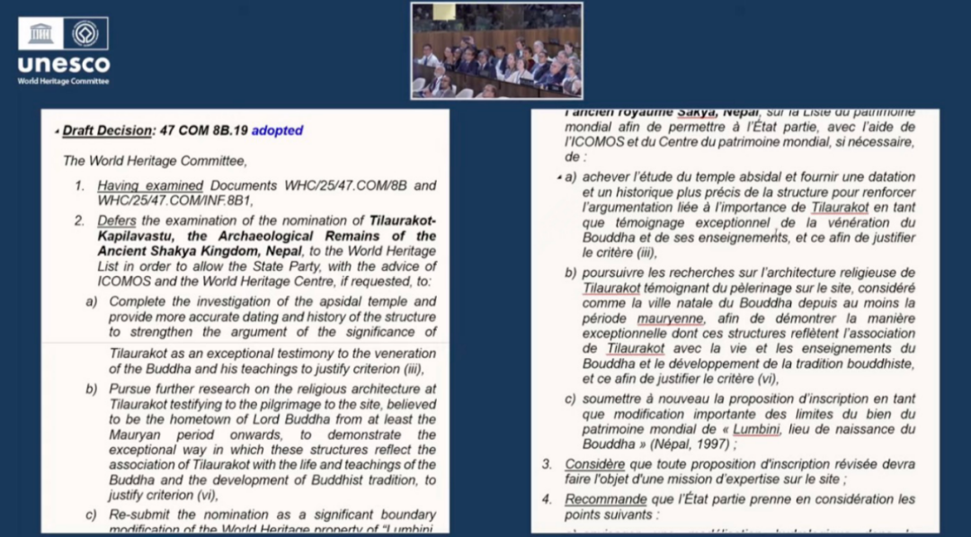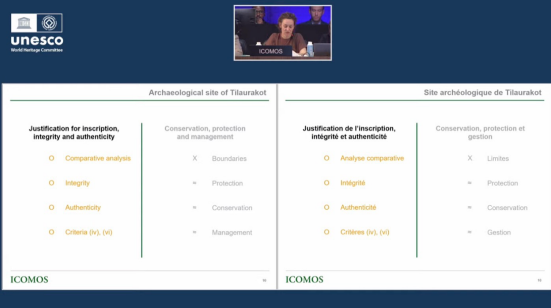 12日上午,第47届世界遗产大会审议了尼泊尔提交的提名项目“提罗拉科特-迦毗罗卫城,释迦古王国考古遗迹(Tilaurakot-Kapilavastu, the Archaeological Remains of the Ancient Shakya Kingdom)”,最终以“重报D (Deferral)”的结果落槌定音。