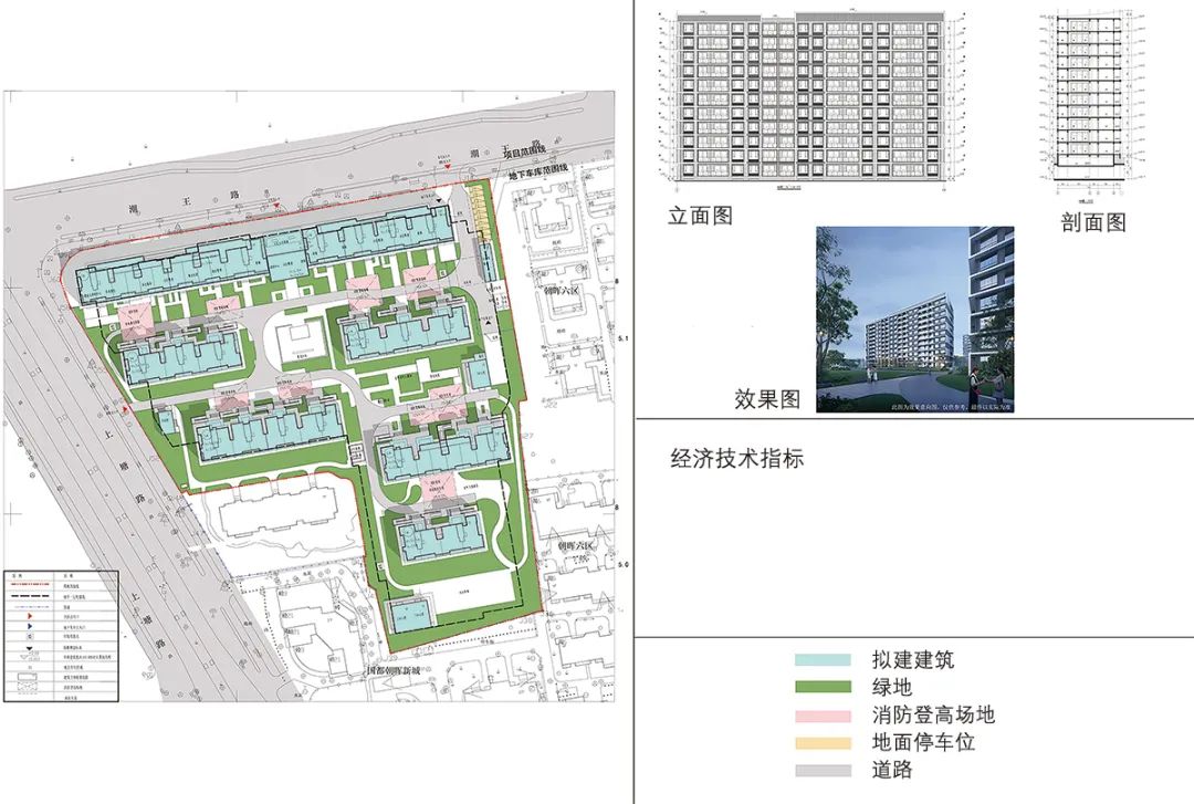 ▲ 图5 浙工新村项目总平面,主要立、剖面和效果