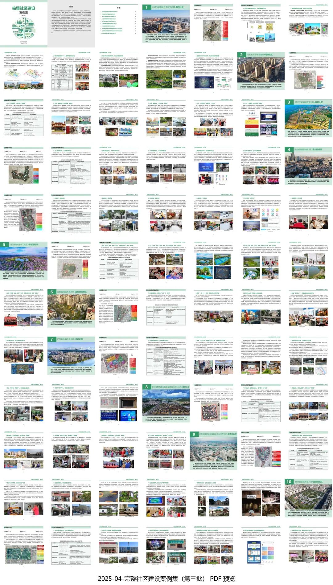 案例集紧扣党中央、国务院关于社区建设的部署要求,延续了 2023 年 12 月、2024 年 6 月第一批、第二批案例集的推广思路,聚焦 “为民、便民、安民” 核心目标,精选全国 10 个完整社区建设样板: