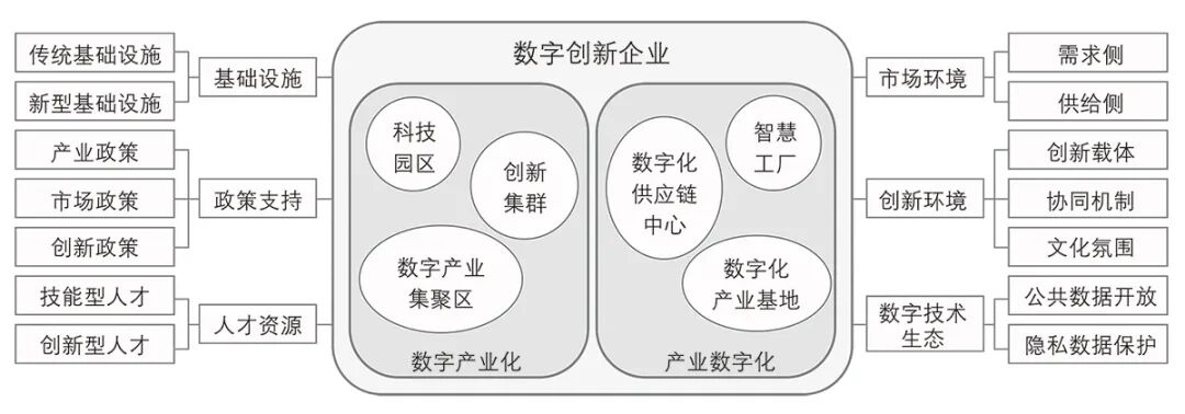 数字创业生态系统是指由数字技术、平台经济和创业生态系统深度融合后的产物。相较于传统的创业生态系统,其具有以下特征:(1)在组织方式上,数字创业生态系统更去中心化,其基于数字平台使创业者实现跨越物理空间的限制,减少了对特定地理区位的依赖来进行远程创新与协作。(2)在资源整合方面,数字创业生态系统有多边市场和开放式的平台链接起多元主体,更具开放性地使创新资源快速流通。(3)在创新模式上,随着技术进步和市场需求的不断变化,数字创业生态系统的边界更具弹性,在整个创新市场中使创业机会的涌现更具不确定性。