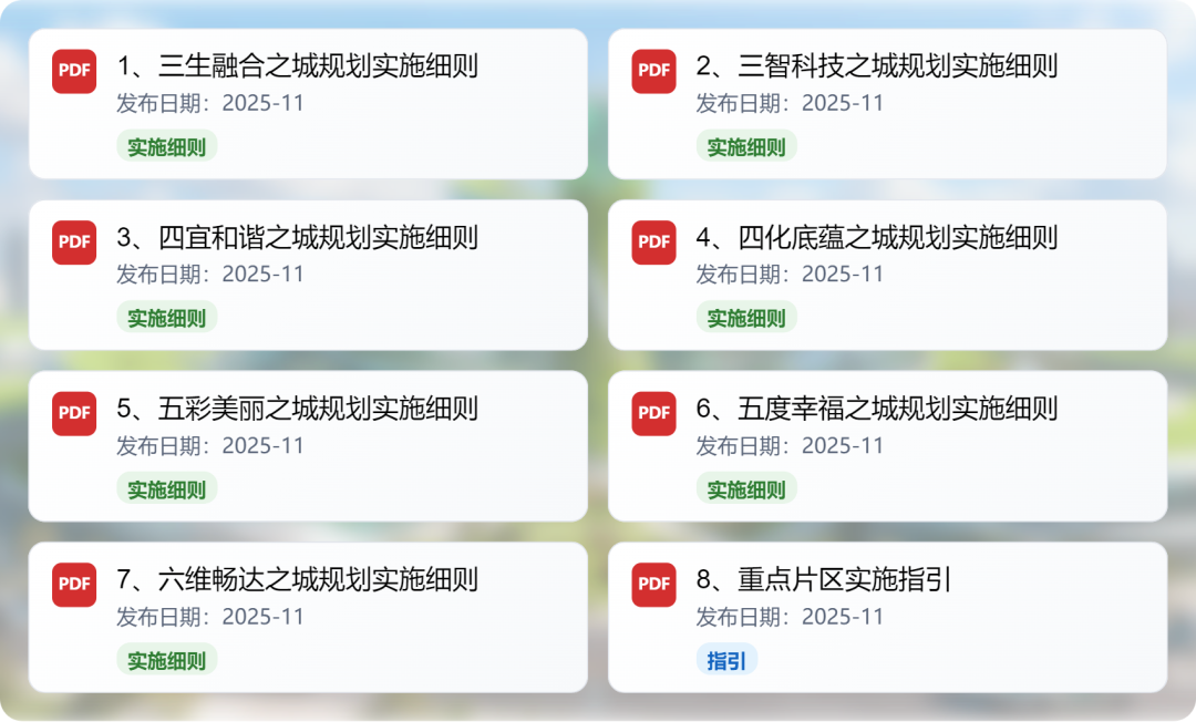 《实施细则》包含七个专项规划实施细则与一个重点片区实施指引,各文件既聚焦专业领域痛点解决,又通过“空间协同、功能互补”形成整体合力。分别是: