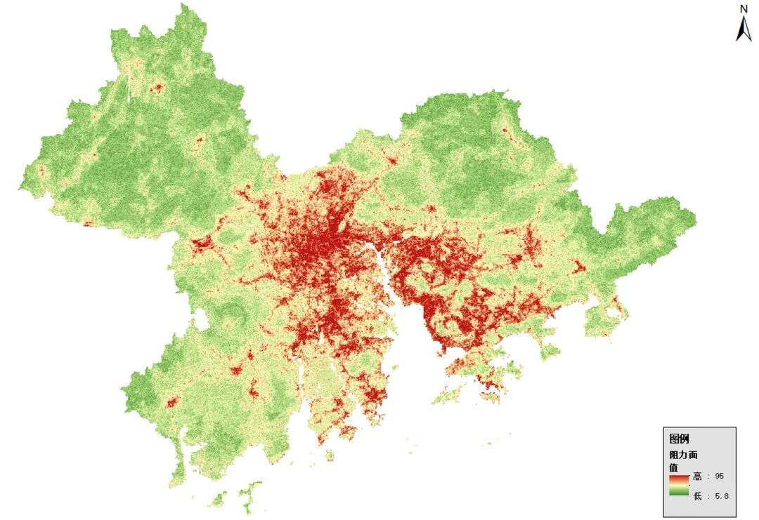 第二步,分析“阻力”——评估物种在不同景观中移动的难度,综合考虑自然环境脆弱性、城市发展强度、夜间灯光指数等因素。