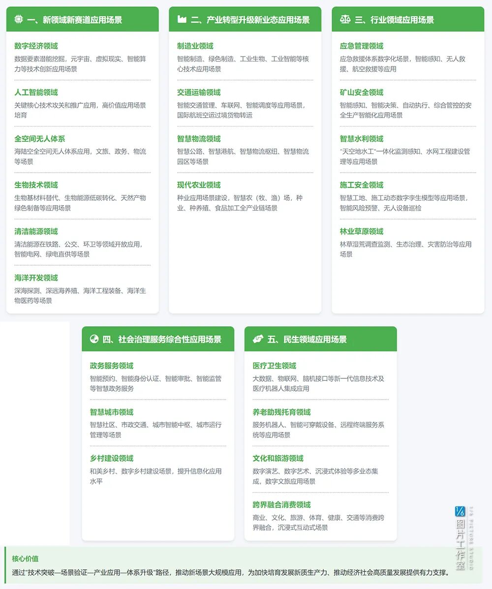 《意见》里提到了三大场景:综合性重大场景、行业集成式场景、高价值小切口场景,这三大场景各有各的适配对象:
