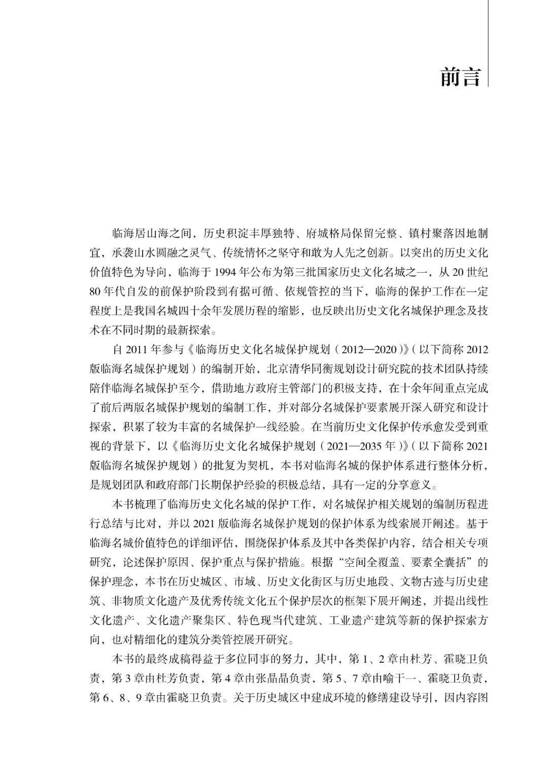 《临海历史文化保护传承丛书》基于北京清华同衡规划设计研究院遗产保护团队历时十五年的深耕研究与规划实践而成,邀请清华大学、同济大学、中国城市规划设计研究院的专家学者,以及临海当地古建专家作为丛书顾问,并邀请全国工程勘察设计大师、清华大学张杰教授为丛书作序。