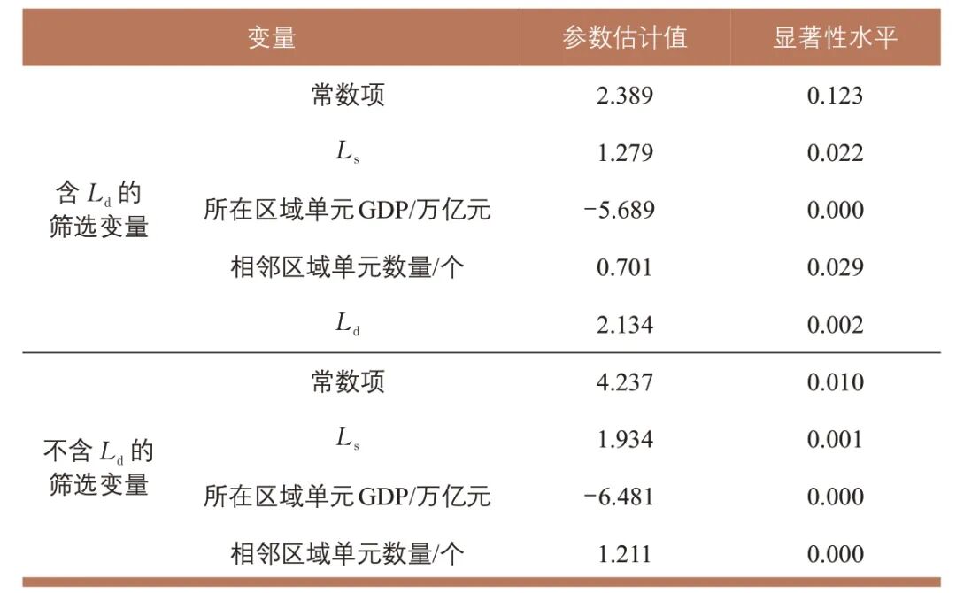 3)以校正后的出行次数作为因变量,在原有自变量基础上,补充区县级特征变量(包括所在城市GDP、GDPC、相邻区域单元数、副城与主城GDP乘积、Ls),进行泊松回归建模。