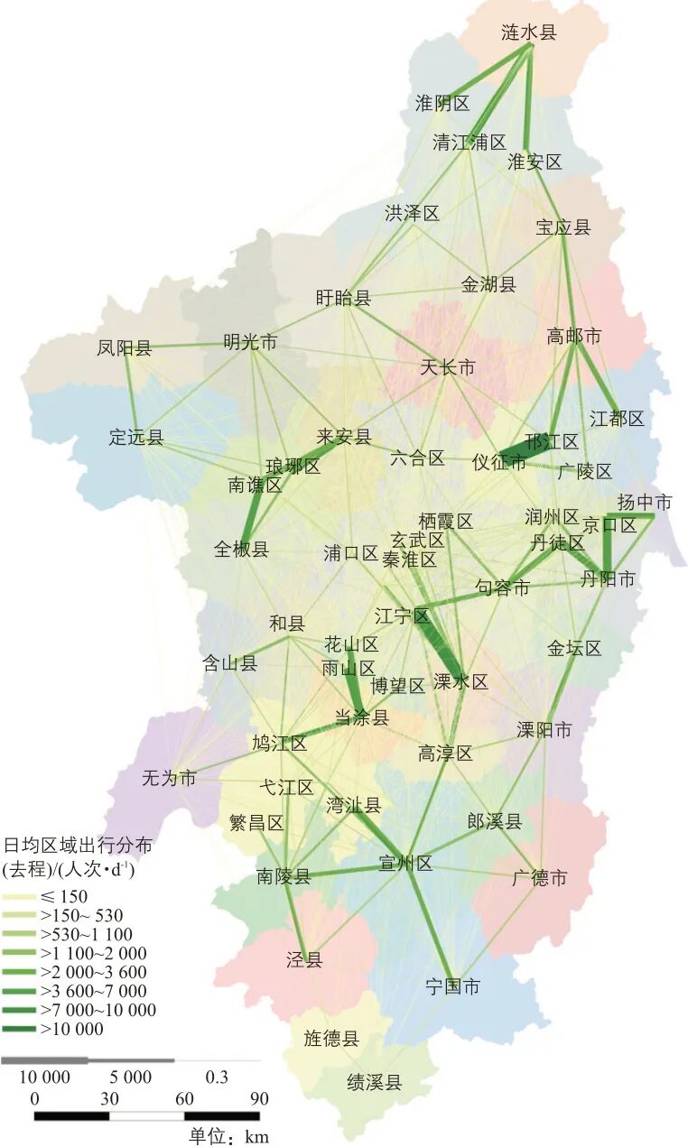 图6 基于手机信令数据的日均区域出行分布(去程)Fig.6 Average daily regional travel distribution