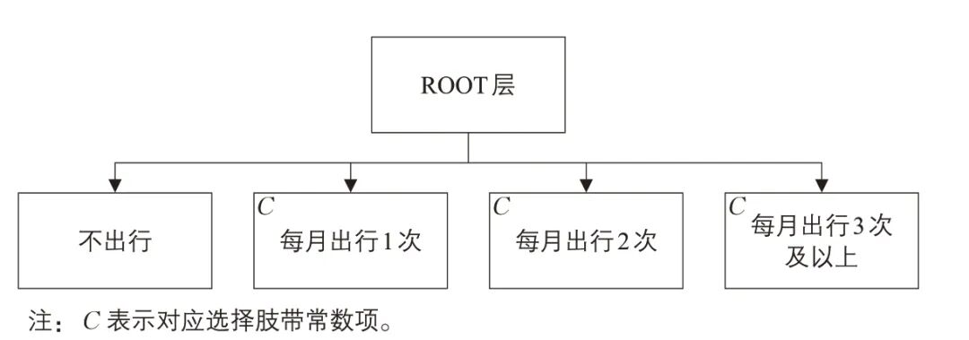 区域出行生成模型通常采用出行频率选择Logit 模型,其选择肢为不同的出行频率等级(见图4)。
