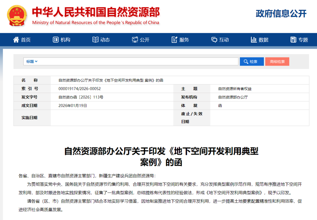 自然资源部办公厅关于印发《地下空间开发利用典型案例》的函