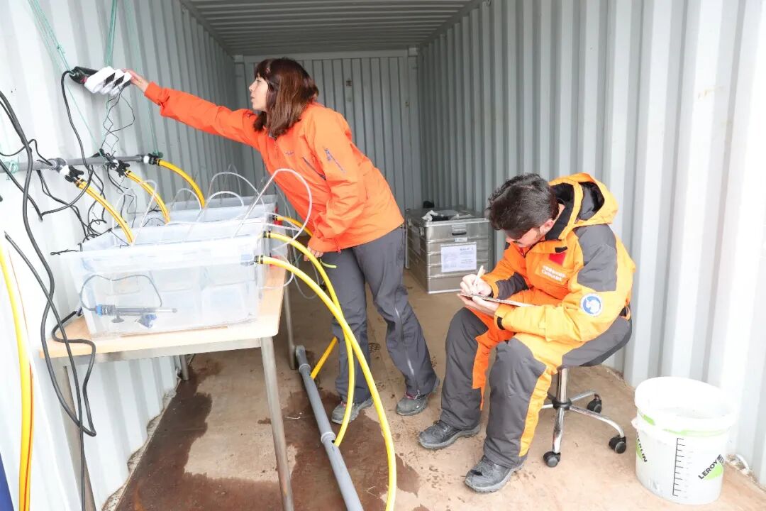 卡门在集装箱实验室内开展关于南极海洋生物的模拟培养实验。