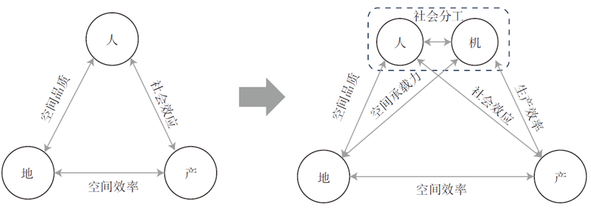 图3 从“人—地—产”到“人—机—地—产”的空间逻辑转换示意图