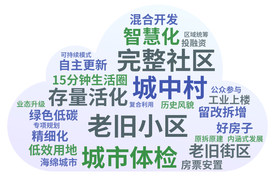各地城市更新重点任务词云图