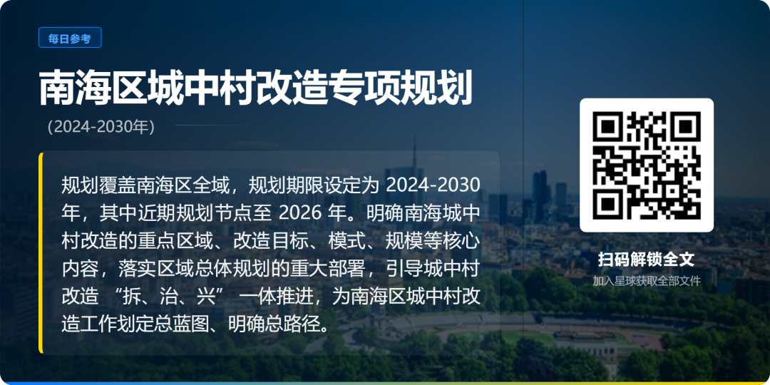 内容整理自:南海区城中村改造专项规划(2024-2030 年);发布机构:佛山市自然资源局南海分局;相关声明:本文仅供行业交流学习,具体内容以官方发布文件为准。