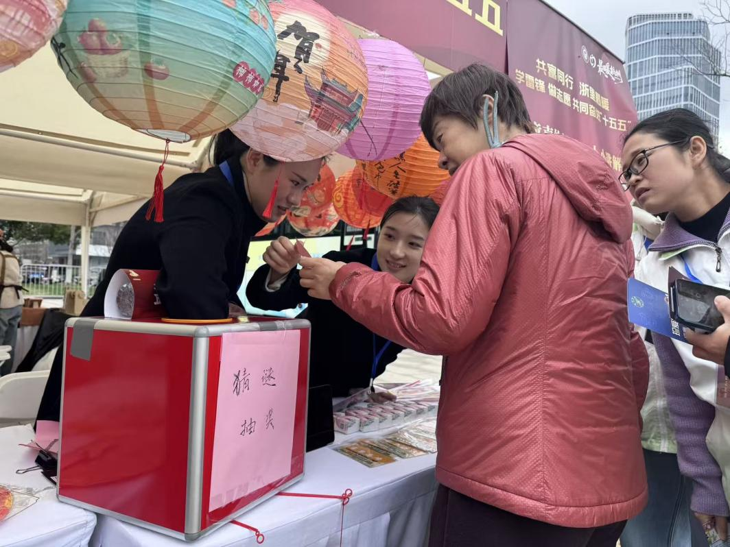 本次市集活动中,市规划和自然资源局联合城市规划展览馆精心设计三大特色体验环节,将志愿服务宣传与规划知识科普深度结合,让活动现场既富趣味又兼具知识性。摊位上循环播放“童声绘杭城”小小讲解员培育活动宣传片,生动展现小小讲解员的培训点滴、讲解风采与成长蜕变;同步开展的趣味知识问答人头攒动,志愿者们精心布置灯笼,问答题目紧扣杭城历史与城市规划特色,吸引众多市民驻足参与、踊跃竞猜,大家在互动解题中领略杭城底蕴、了解规划知识,现场处处洋溢着欢乐温馨的氛围。
