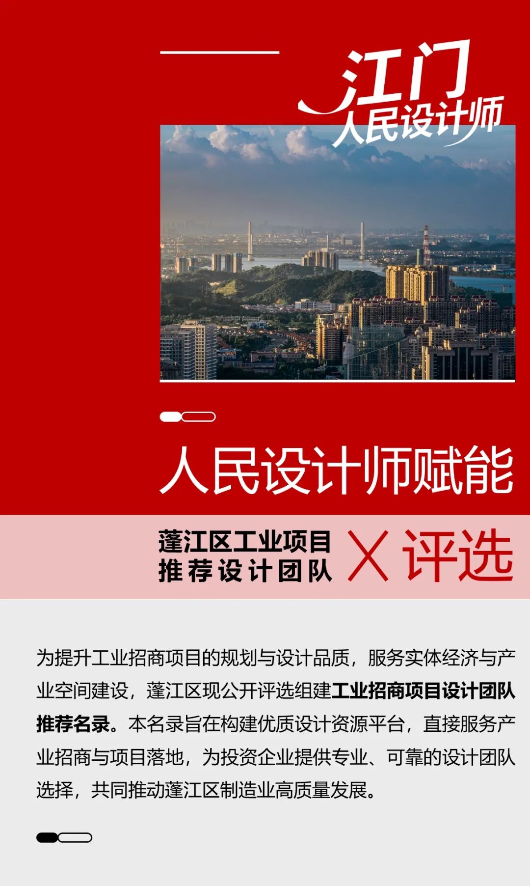 原文始发于微信公众号(城PLUS):江门市蓬江区邀你入“局”|招募工业项目设计团队