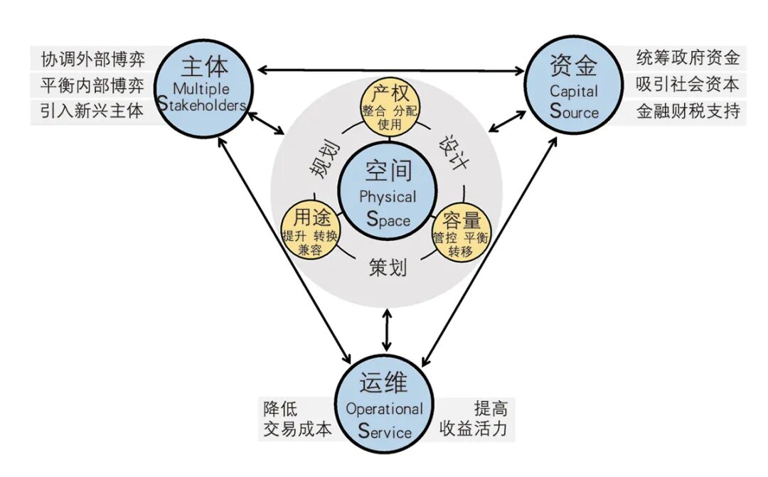 在土地之外,中国特色的社会主义经济体制坚持以“公有制”为主体,国有企业深度参与城市更新以及村集体在城中村改造中扮演关键中介作用,亦成为“公”视角下中国城市更新的独有特色。在全球经济下行的特殊时期,市场参与更新的动力减弱,城市更新对政府和国企的依赖度进一步提高。国企既可能是存量空间的持有者,也可能是存量空间改造的行动者:他们既要承担政府赋予的社会责任,也要追求经济利益的实现和资产的保值增值,达成“政治—经济”导向下的双重绩效目标。村集体则在城中村改造中发挥着不可替代的作用:他们能够围绕土地征收、房屋拆迁、补偿安置等问题协调居民意愿,能够代表村民与政府、开发商等各方进行沟通谈判,还可以利用集体资产进行投资、与其他主体开展更新合作等。
