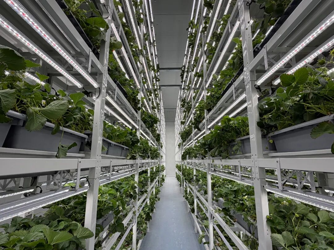 2025年12月,第十五届“白鹤草莓”文化节上,长三角地区规模最大数智植物工厂——青浦区白鹤数智草莓植物工厂宣布启用。项目占地18亩、建设面积11.35亩,其中生产种植及配套服务的智能玻璃温室面积达3456平方米,内部设有6个种植车间、1个科研实验车间、1个科技展厅、2个研学生态教室、1个智能分拣流水线区及其他配套功能区,总投资约3555.4万元,建成后可实现365天全年种植供应高品质零农残草莓近50吨。其生产能力将达到传统设施农业的10倍以上,产值为传统设施农业的30倍以上,年产值预计约1000万元。