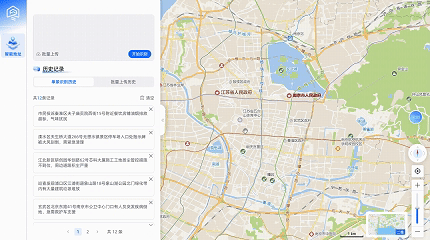 将地名地址与大语言模型融合,结合平台地址语义搜索与多层级匹配技术,打造AI驱动的地址智能识别工具。可精准解析自然语言描述中的模糊地址信息,以可视化交互形式在地图上精准呈现空间位置,构建自然语言与地理空间双向翻译通道,有效降低跨领域地理信息应用门槛。