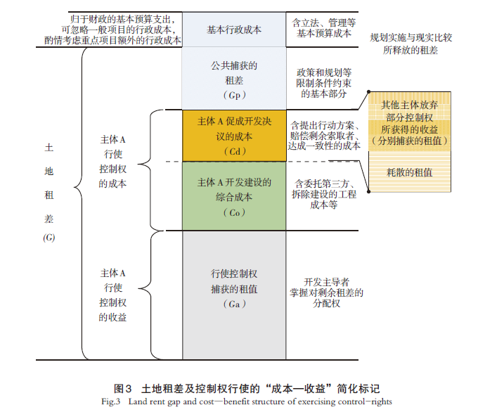 结合土地租差理论,构建土地租差与主体行使控制权的“成本—收益”关系(图3),简化表达为: