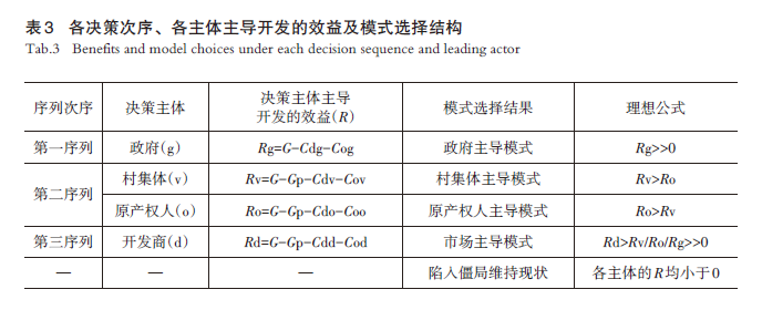 基于决策序列与“成本—收益”关系,构建理想的模式选择结果(表 3):