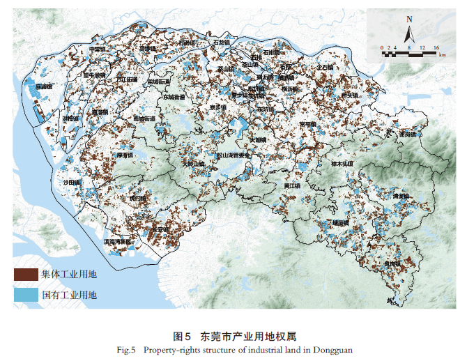 东莞经农村工业化阶段,当前控制权格局呈 “民间强—政府弱”特征(表4)。据第三次土地利用调查,市级统筹土地资源仅占全市5.2%,集体自建厂房占全市物业的1/4(图5)。