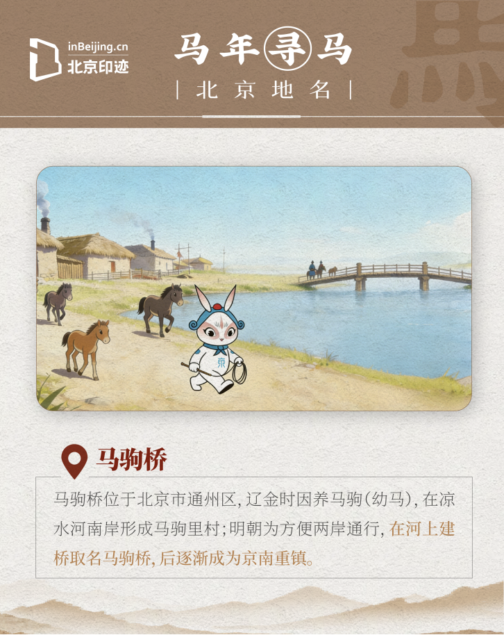 2026年恰逢丙午马年,“马”所蕴含的奋进向上的精神,早已深度融入北京的城市肌理。诸多含“马”的地名是历史活化石,亦见证城市更新。“北京印迹”平台借此契机,带领大家一起寻踪,探索北京地名文脉,见证城市更新成果。