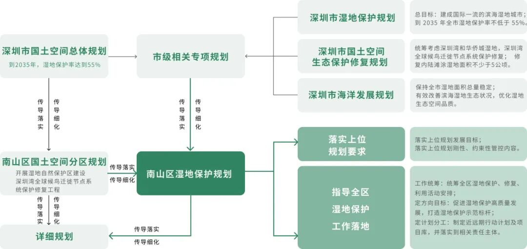 这个规划可不是纸上谈兵,它是南山区国土空间规划体系中的资源保护利用类重要的专项规划。我们充分衔接了上位规划,落实了发展目标和刚性管控内容,同时也统筹安排了全区湿地的保护、修复和利用活动。换句话说,这个规划就是南山区湿地保护的“行动指南”,所有和湿地保护相关的行为都要按照这个规划来。