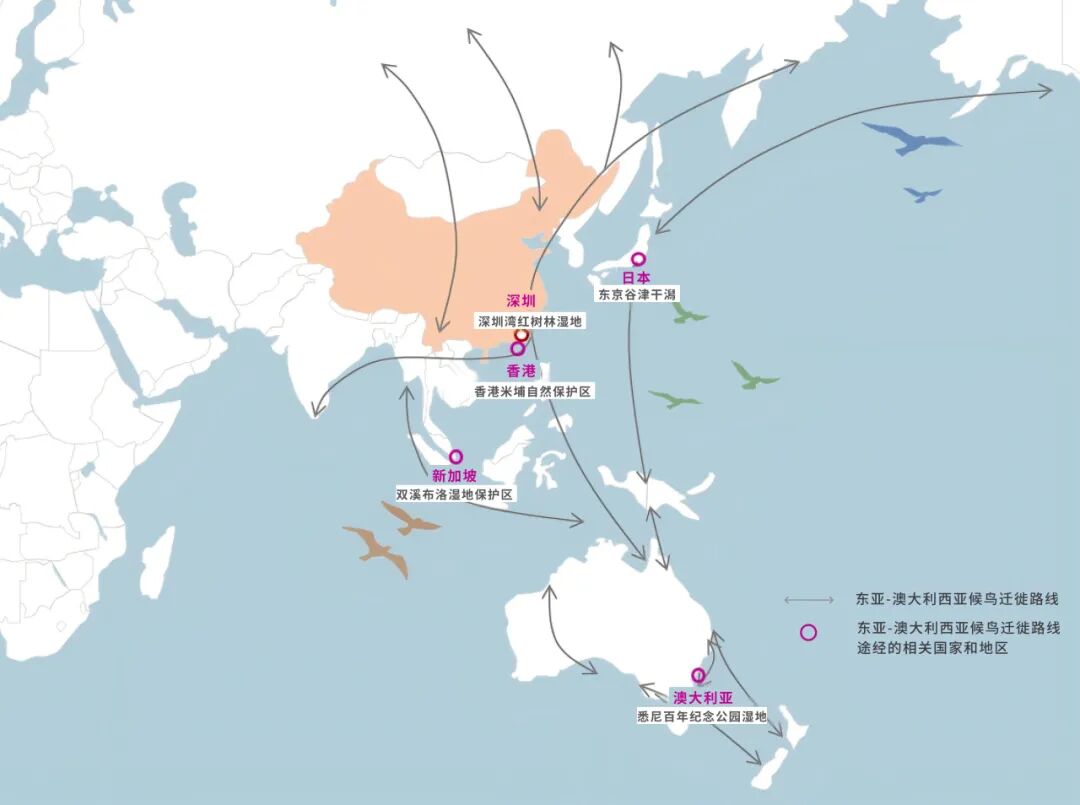 ◎东亚—澳大利西亚候鸟迁徙路线示意图