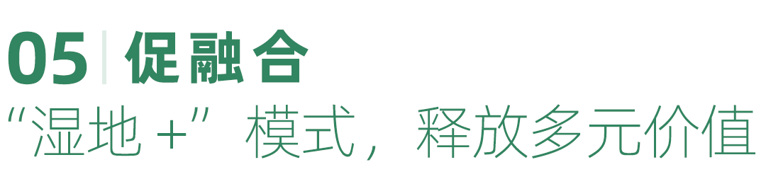 我们提出了湿地与产业融合发展的新模式,比如湿地与科创产业融合,打造科创示范走廊;湿地与文旅产业融合,编织“海洋文化飘带”;湿地与科教文旅产业融合,建设环湖休闲文化经济共同体。这就像是给湿地赋予了新的“超能力”,让它们不仅能保护生态,还能带动产业发展。