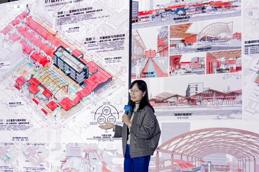11月7日,第八届武汉设计双年展开幕式上,2025 武汉国际创意设计大赛(金黄鹤奖)举行隆重颁奖。大赛以“烟火江城・无界共创”为主题,聚焦7个市民常去的地标,面向全球征集空间提升与功能策划方案。9月底开赛以来,专业组、大众组参赛者经集体调研、潜心构思,提交100余份创意方案,最终评选出20余个奖项。