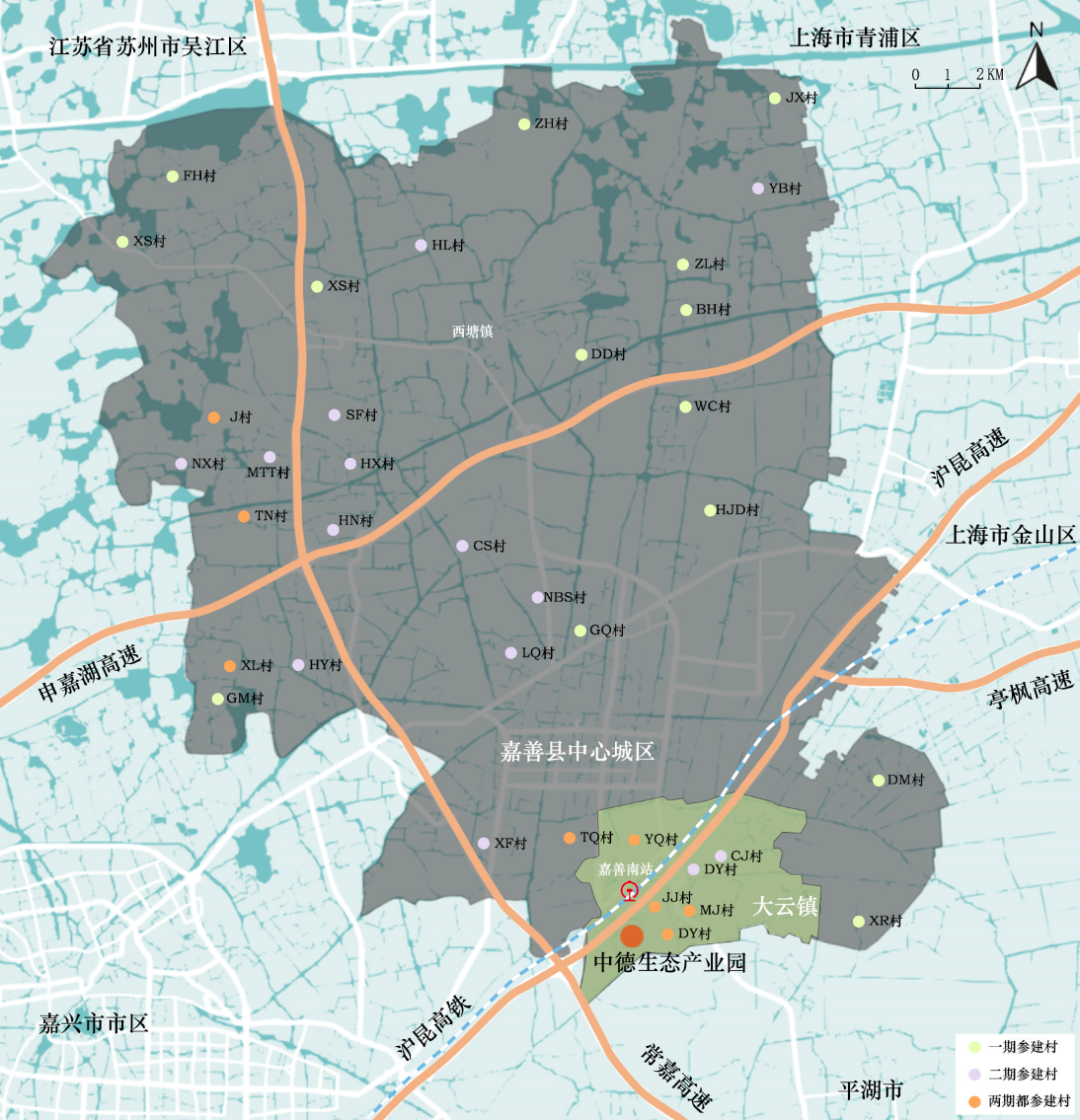 图3 大云镇、中德生态产业园与参建村的区位分布