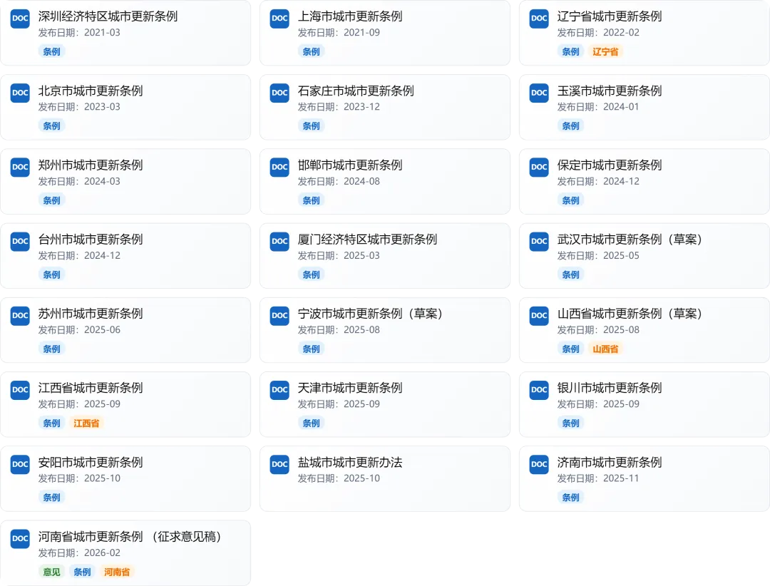 注:目前全国《城市更新条例》已收录 24 个,公众号私信回复:城市更新条例,进入知识星球或规划云查看全部文件。