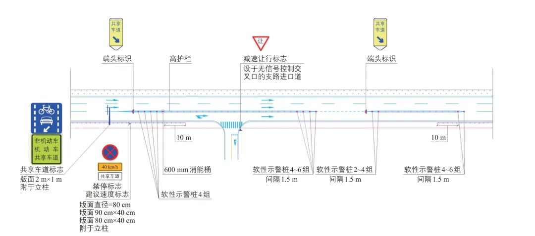 图5 机非共享车道一般路段交通设施设置示意
