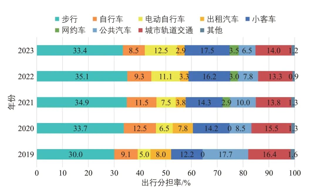 图1 广州市中心城区交通结构变化情况